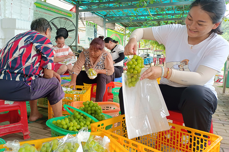 “今年的葡萄收成有7萬斤以上,市場價格每斤15元到23元,主要銷往廣東、湖南等地?!惫鹕态F代農業示范基地負責人蔣女士說。
