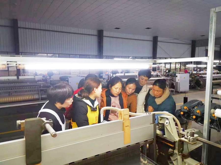 “我們到外地帶薪培訓,回來就地就業,工作和家庭兩不誤?!奔易⌒贸强h紅渡鎮渡江村的脫貧戶黃揚軍目前在園區的織綢廠前道車間上班,工作之余還與妻子大力發展種桑養蠶,“去年我們通過養蠶實現增收3萬多元”。能夠在當地就近就業,群眾們的工作收入都更有保障,生活生產也更有盼頭。