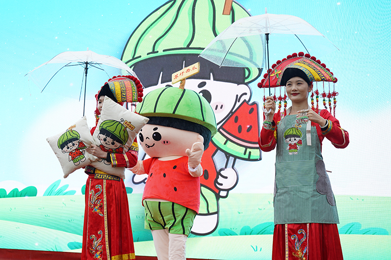 活動現場,處處都是西瓜元素。游客朋友現場品瓜,盡享蘇圩西瓜的甘甜美味;可愛的西瓜仔人偶高萌亮相,引得眾人紛紛拍照;布袋、抱枕等蘇圩西瓜文創產品登臺展示,特色十足;歌曲《蘇圩鎮等你來》、平話山歌《瓜香千里鄉村興》唱出瓜鄉蘇圩的甜蜜美好……