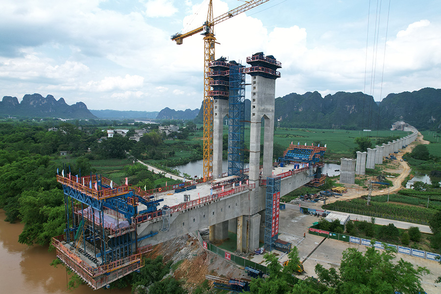崇憑鐵路是自治區統籌推進的重大項目,由廣西交通投資集團主導投資建設。項目新建正線全長81.52公里,橋隧比85.63%,線路東起崇左市江州區,往西穿越寧明縣、龍州縣,終至憑祥市,設崇左南、寧明東、龍州、憑祥東4個車站。全線于2022年7月實現全面開工,建設工期3.5年,計劃于2025年開通運營。(李群 彭文金)
