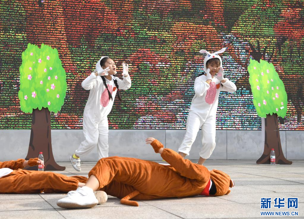 6月30日,廣西南寧市玉蘭路小學學生表演防溺水情景劇。