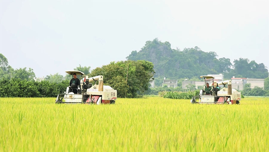 風吹稻浪“豐”景美,又是一年夏收時。仲夏時節,廣西平南縣39萬畝早稻開鐮收割,農戶抓住晴好天氣搶收稻谷,確保顆粒歸倉,今年平南早稻預計產量約19萬噸。