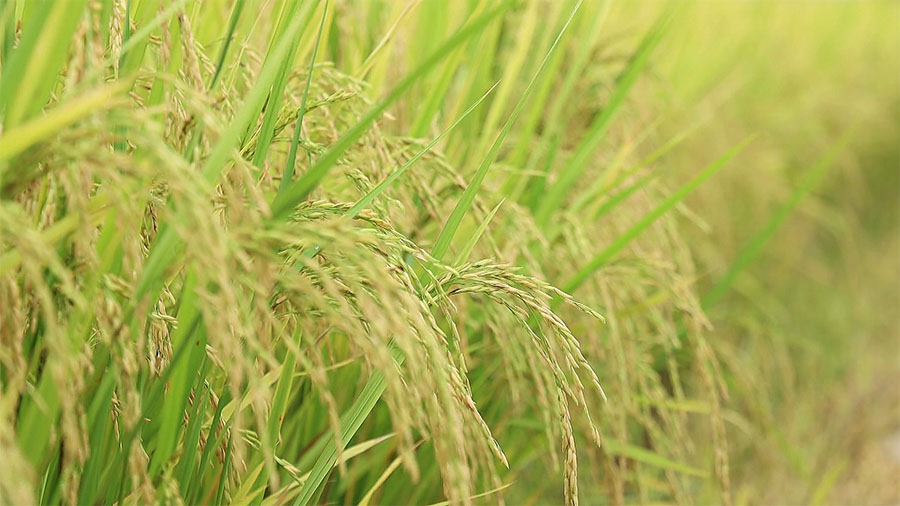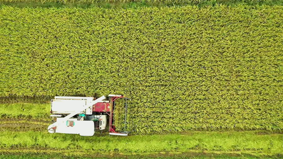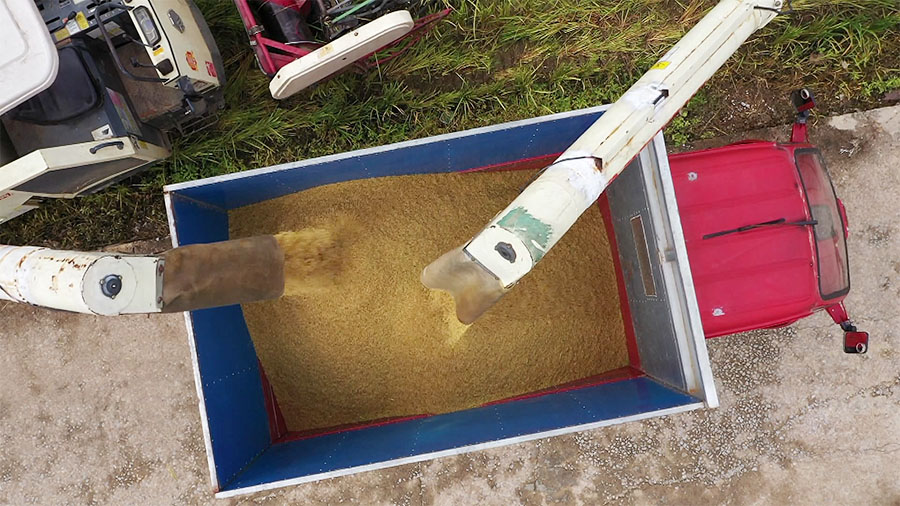 顆粒飽滿的稻谷被直接運送到路旁的小貨車上
