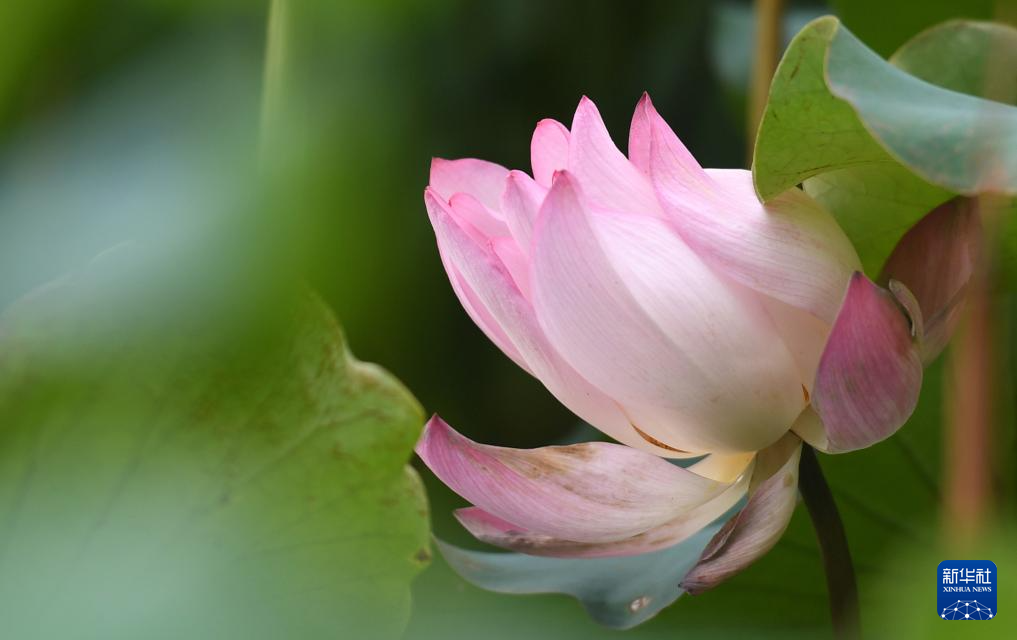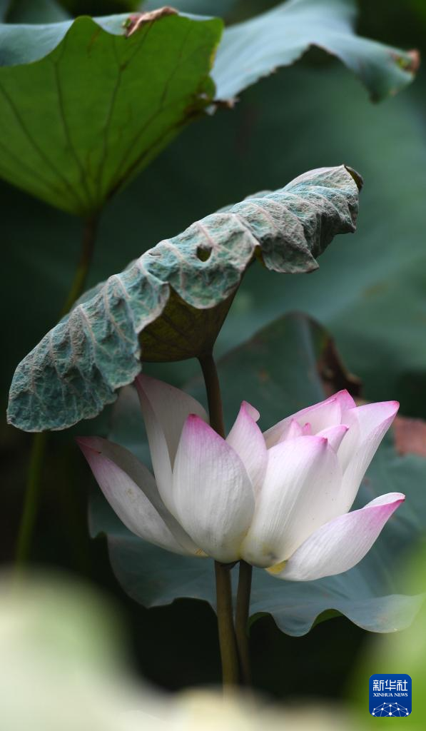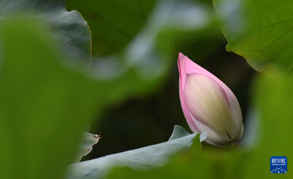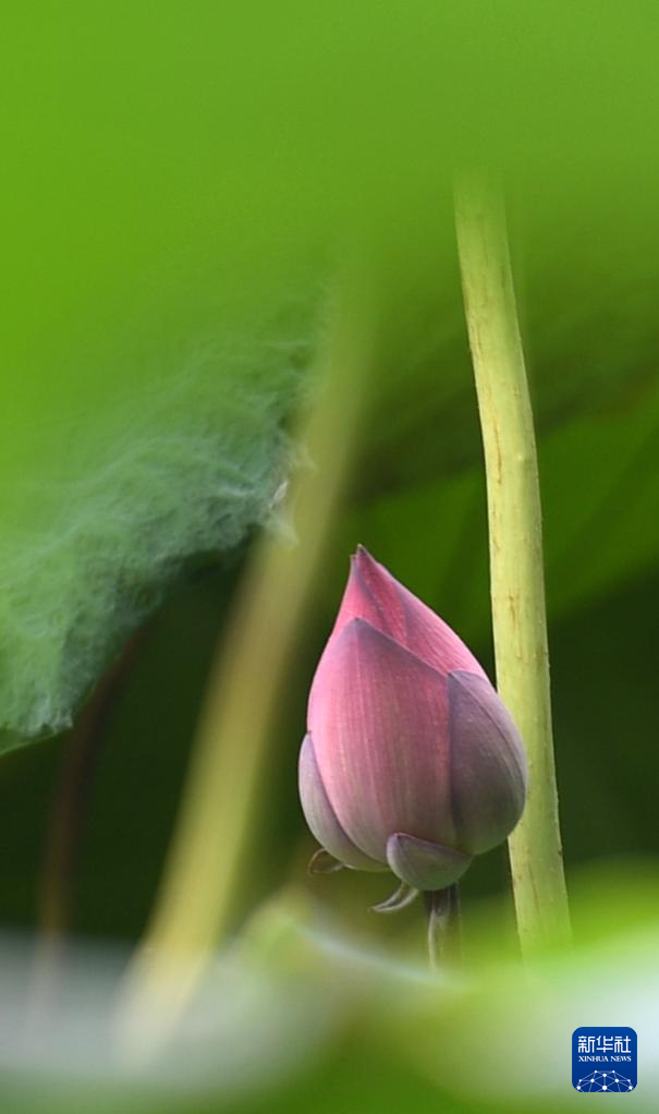 酷暑時節,廣西南寧市南湖荷花有的含苞待放,有的已經悄然綻放。