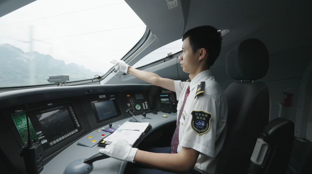 作為土生土長的環江毛南族人,中國鐵路南寧局集團有限公司南寧機務段毛南族動車組司機韋寶賢駕駛動車駛入毛南山村,為家鄉人民暢通“幸福路”。