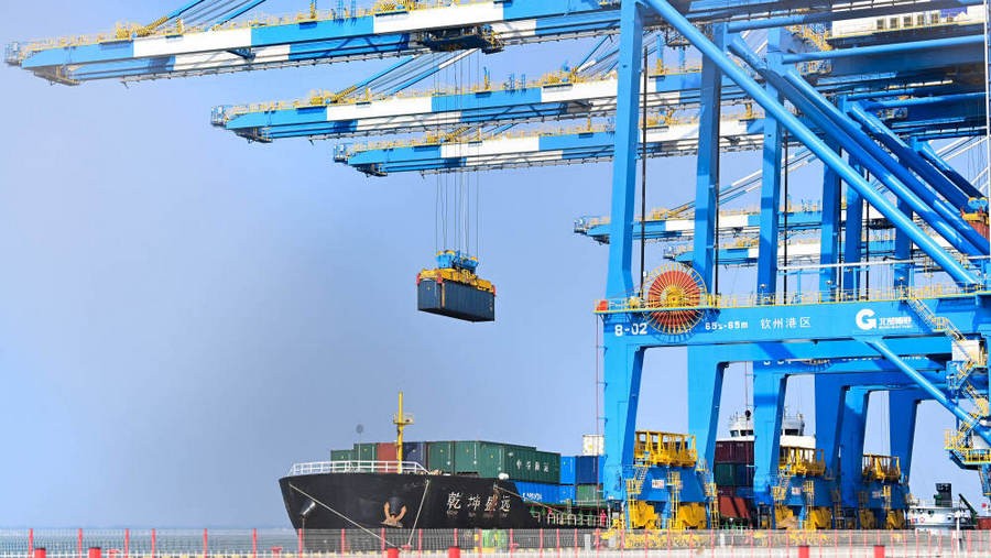 在中越邊境的友誼關口岸,跨境貨車絡繹不絕,一柜柜東盟水果從這里進入國內,一批批中國產品也從這里運出國門。