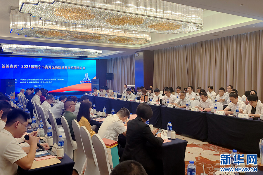 9月16日,南寧市青秀區召開“全國百強 首善青秀”2023年高質量發展招商推介會,宣傳推介青秀區優越的投資環境及政策機遇,13個項目現場集中簽約,總投資額達54.62億元。