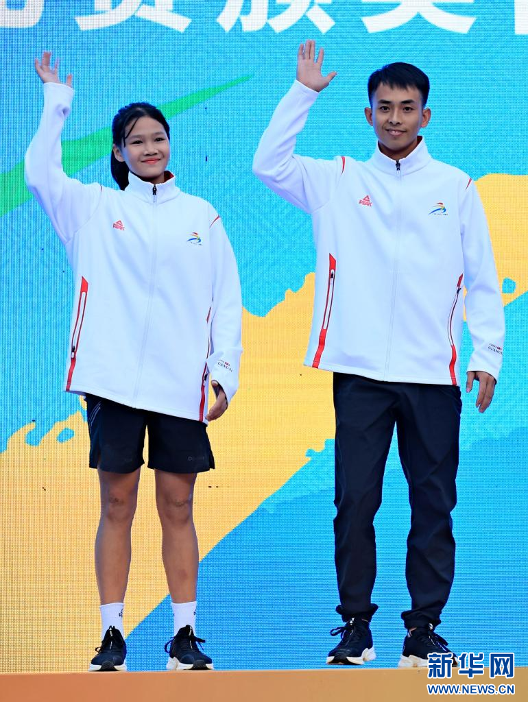 8月20日,在廣西樂業縣,李彥郯(左)在參加第一屆全國學生(青年)運動會攀巖項目預賽前參加集訓。