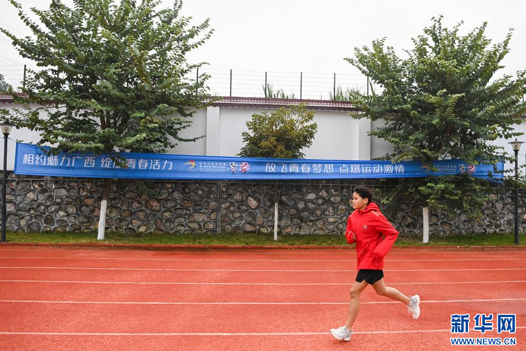 11月10日,在廣西馬山縣古零鎮初級中學,準備參加第一屆全國學生(青年)運動會攀巖項目比賽的李彥郯進行賽前熱身。