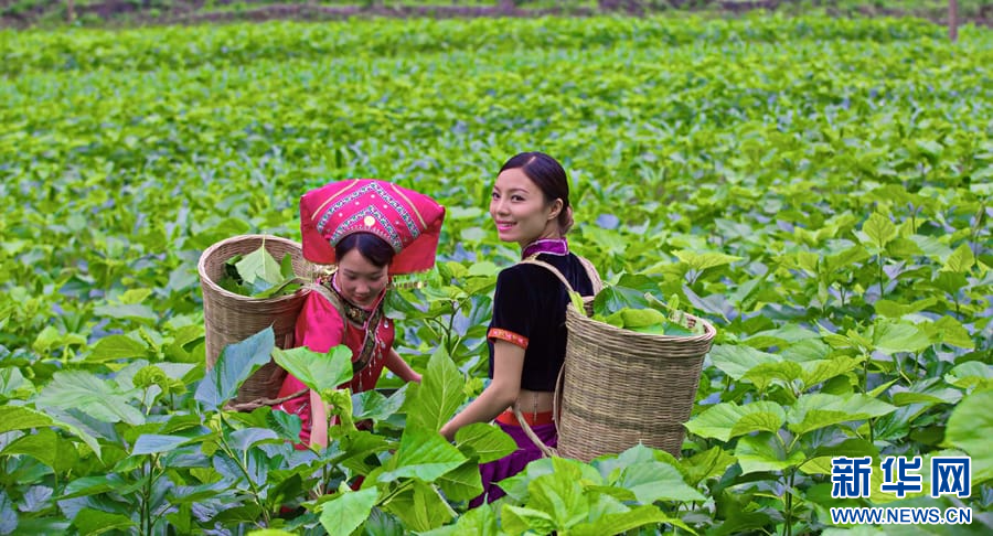 壯鄉姑娘在采收桑葉。忻城縣委宣傳部供圖