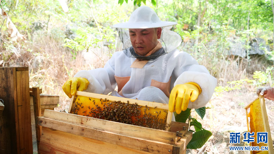 蜂農正在采收蜂蜜。忻城縣委宣傳部供圖