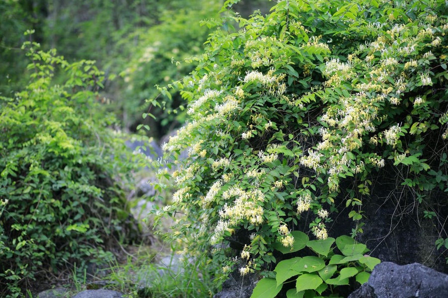 忻城縣內石山遍布,土地稀少,如何讓石山披綠、石縫生金?忻城探索將石漠化治理與經濟發展有機結合的發展道路,引導群眾選擇“任豆+竹子”“任豆+桑樹”“金銀花純林”等多種石山造林模式,當地農民在石縫里、山頂上種植金銀花,同時在任豆、桑樹下套種金銀花,不僅綠了山頭,還種出名氣,帶來了收益。目前,全縣種植金銀花總面積10.6萬畝,產值超過8000萬元。