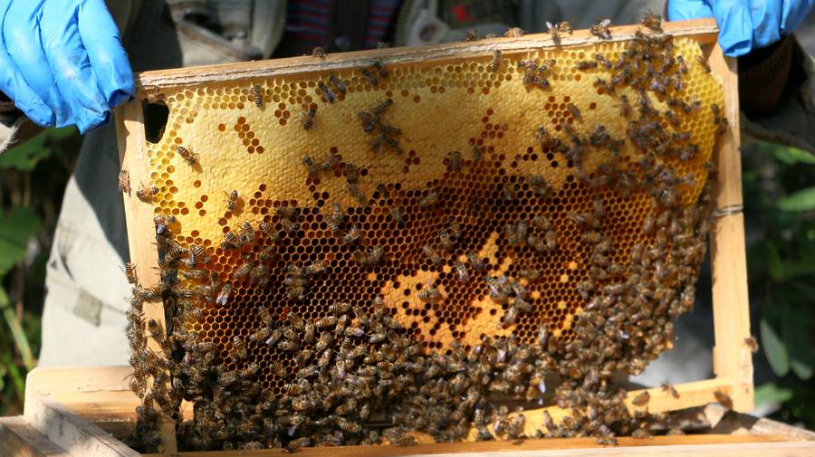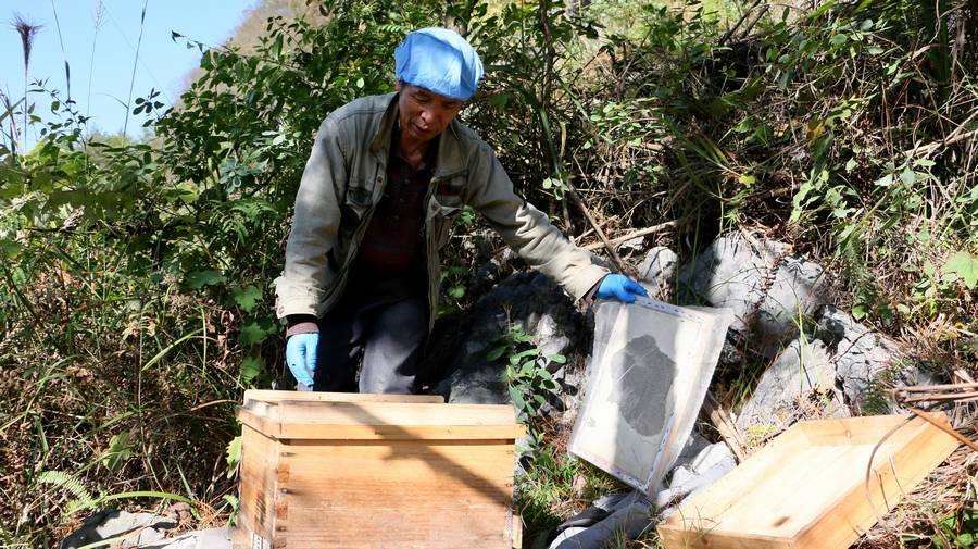 眼下,正是冬蜜采收的好時節,在廣西河池市南丹縣八圩瑤族鄉老圩場村蜜蜂養殖場,一個個蜂箱錯落有致地鑲嵌在山野里,成群的蜜蜂來回穿梭飛舞,忙著釀制獨有的甜蜜。