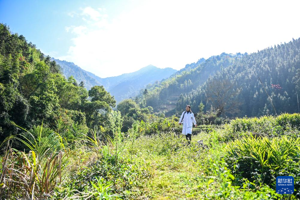 12月6日,在廣西鐘山縣花山瑤族鄉林坪村,唐麗紅走在出診路上。