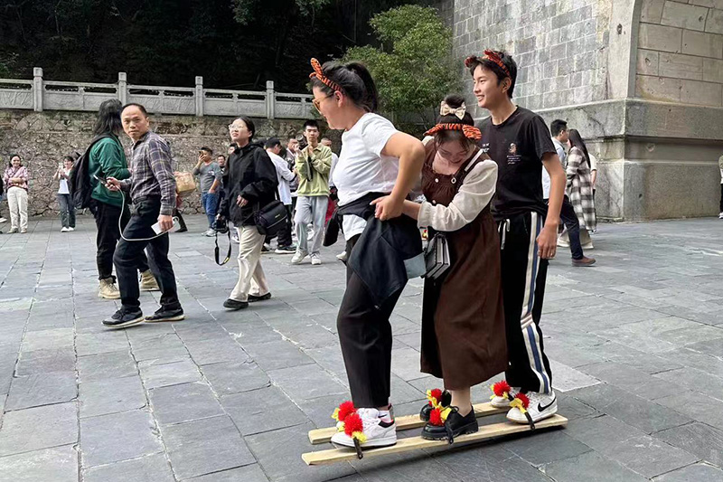當天下午,友誼關景區開展了壯族板鞋、拋繡球、跳壯族舞蹈、品嘗東南亞水果和當地特色小吃等活動,讓“老鐵們”感受南疆邊關的風情。