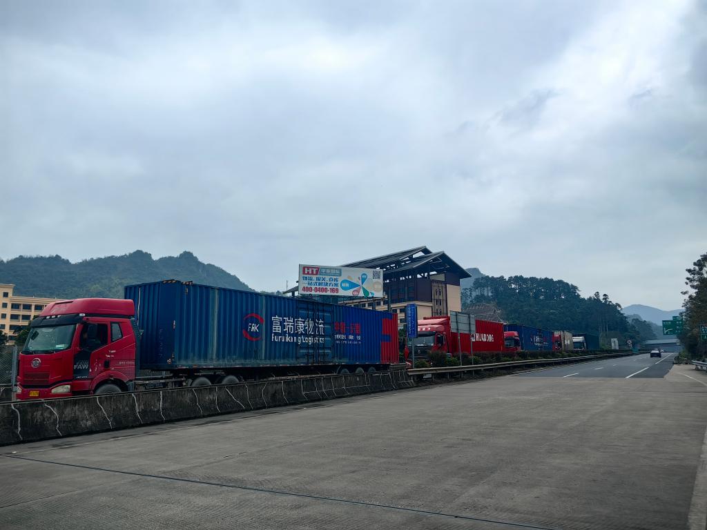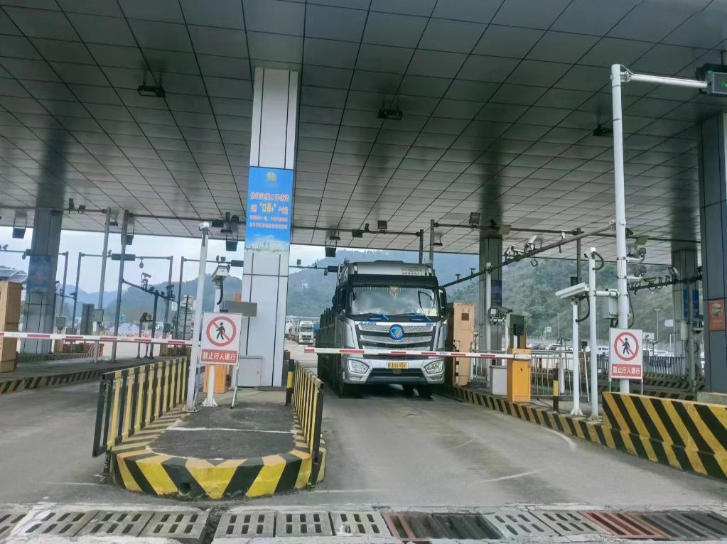 出口車輛正在友誼關口岸辦理手續進入卡口。廣西憑祥市外事商務口岸管理局供圖
