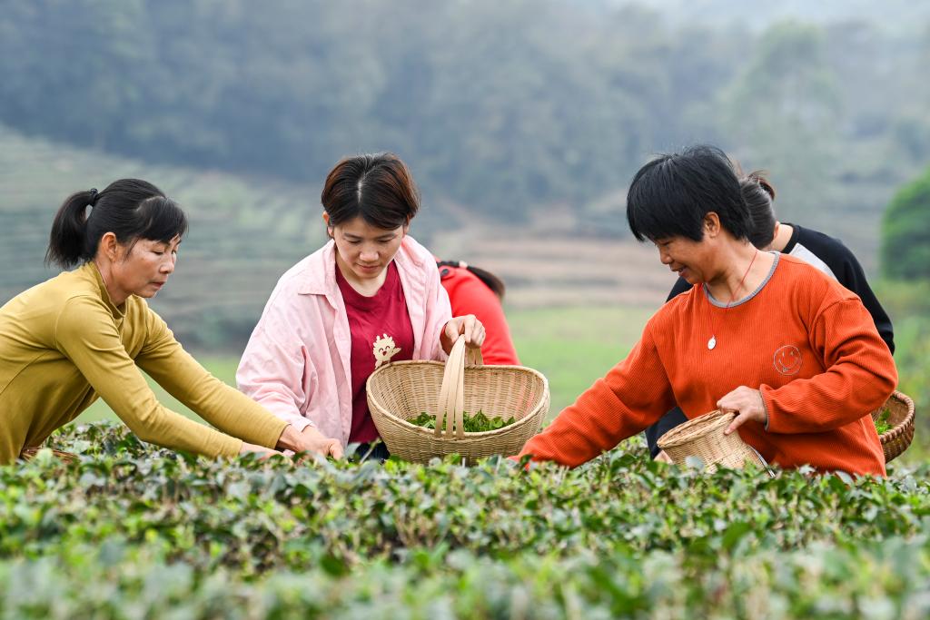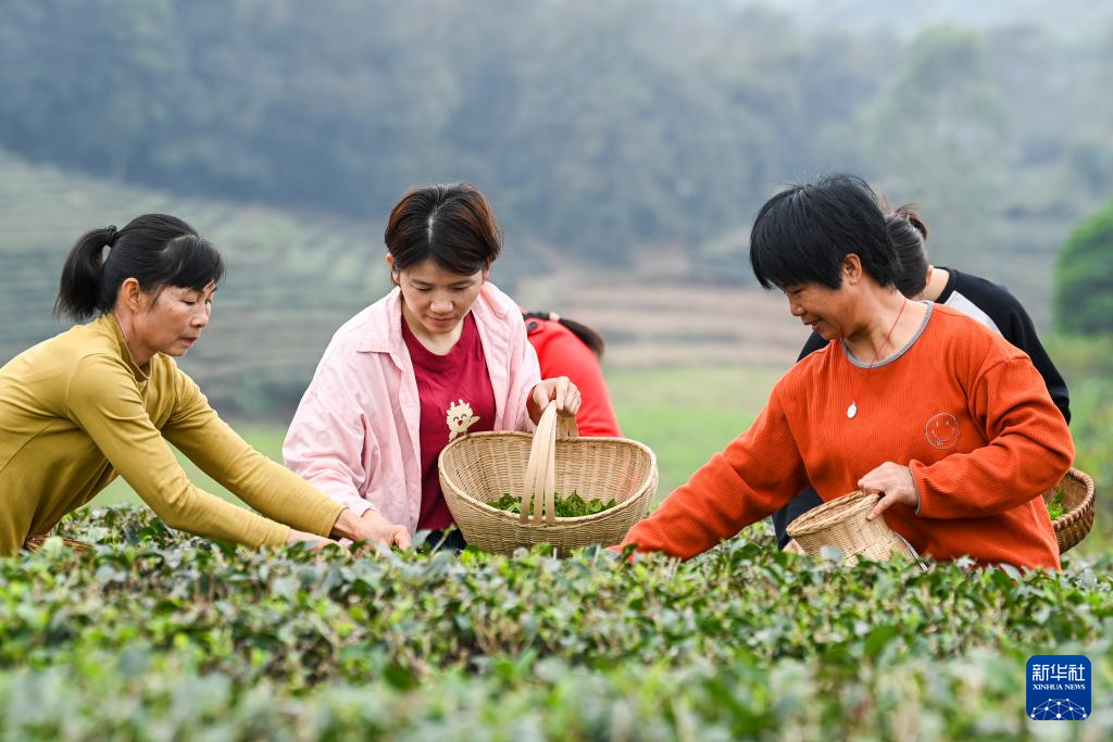 當日是雨水節氣,廣西興業縣山心鎮蓬塘村茶農緊抓農時,采制春茶。近年來,興業縣大力發展茶產業,全縣茶園面積2萬多畝,年產值約1.8億元。