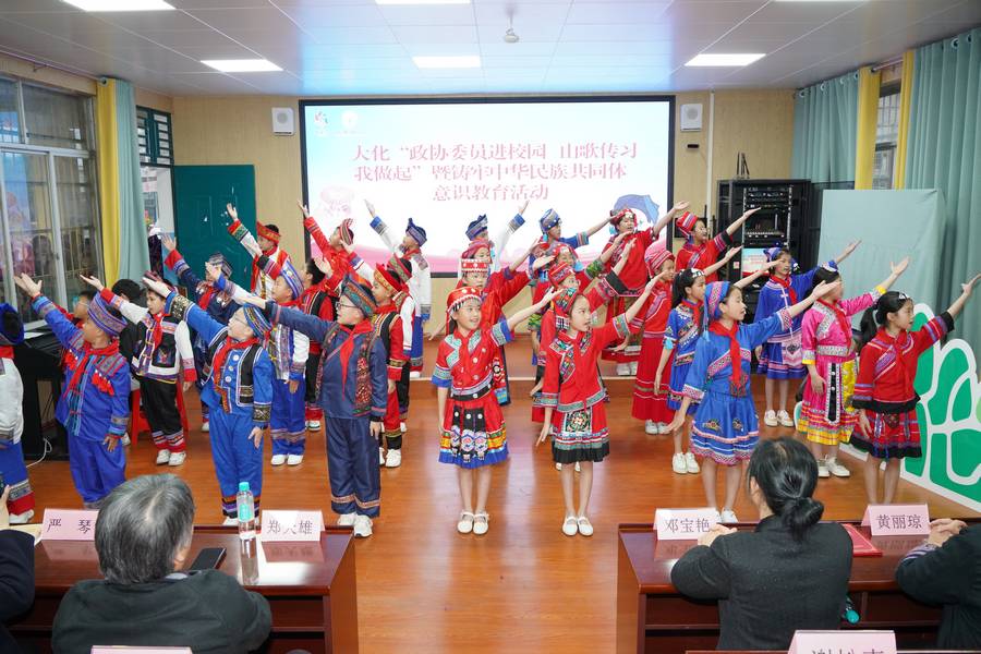 以授牌活動為契機,大化政協組織民族宗教、文化體育新聞旅游等界別開展“政協委員進校園 山歌傳習我做起”暨鑄牢中華民族共同體意識教育活動,以實際行動促進民族團結進步教育工作。