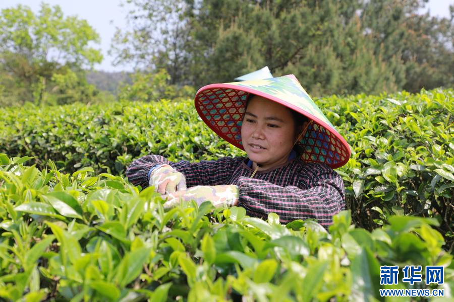 在樂村高山生態茶園里,茶農穿梭其中忙采茶。羅俏攝