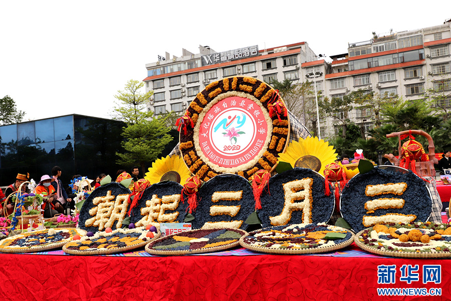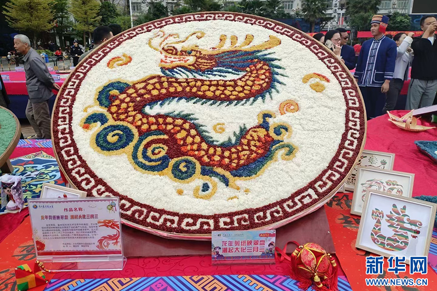 五色糯米飯作品“龍年剪紙映翠盤 潮起大化三月三”