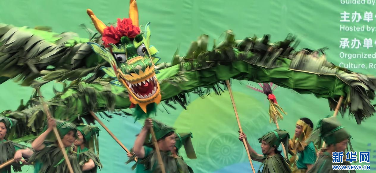 廣西南寧市青秀區壯族芭蕉香火龍隊表演《芭蕉龍舞慶祥瑞》。牙舉成 攝