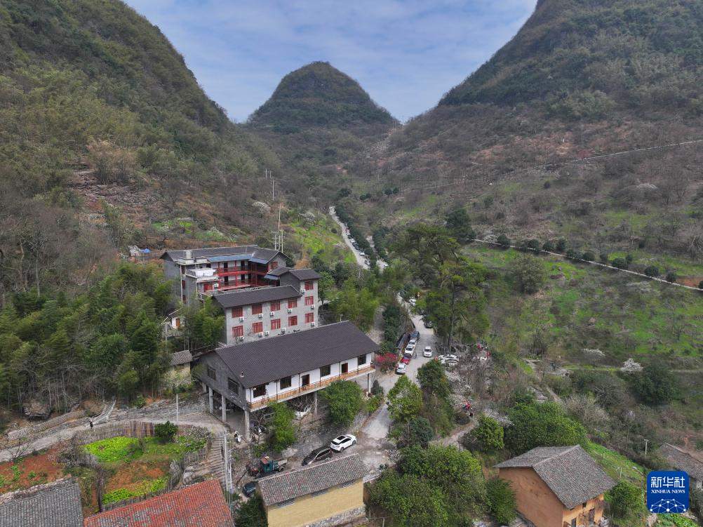 這是銅板屯的食堂和民宿(無人機照片,2024年3月3日攝)。