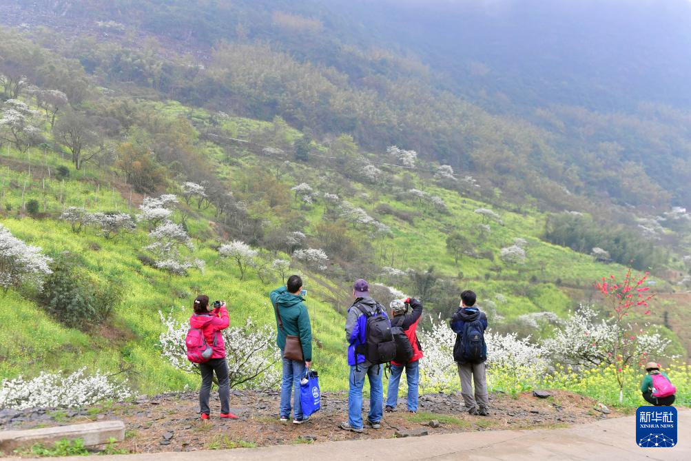 游客在銅板屯賞花(2017年3月4日攝)。