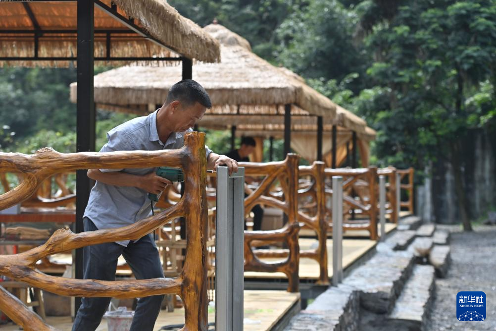 銅板屯村民龍革雄在建設燒烤場(2023年9月23日攝)。