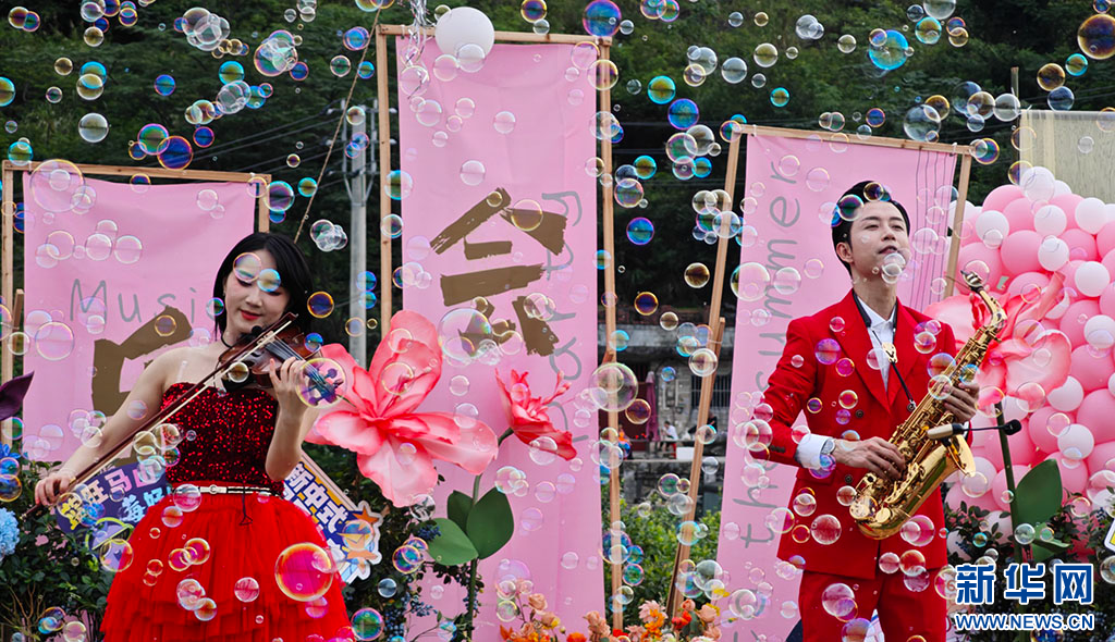 在活動現場,音樂愛好者們與當地壯鼓隊攜手共演,現代的音樂旋律和傳統的壯鼓,共同詮釋著群眾和游客對這片土地的熱愛與贊美,他們在歌聲中傾訴著對家鄉的思念,在鼓聲中傳達著對生活的熱情。