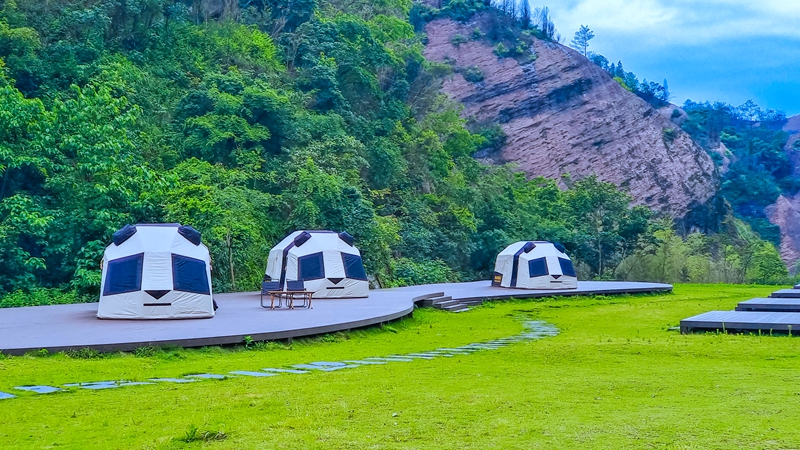 澗谷觀光露營主打青崖赤壁環抱的一方自然澗谷秘境,保留丹霞地貌最原始的壯觀氣景與自然野趣,同時可開展燒烤、帳篷露營、崖壁電影、燈光秀等戶外露營體驗活動,抬頭是浩瀚星河,閉眼是林間清風,每一口呼吸都是大自然的氣息。