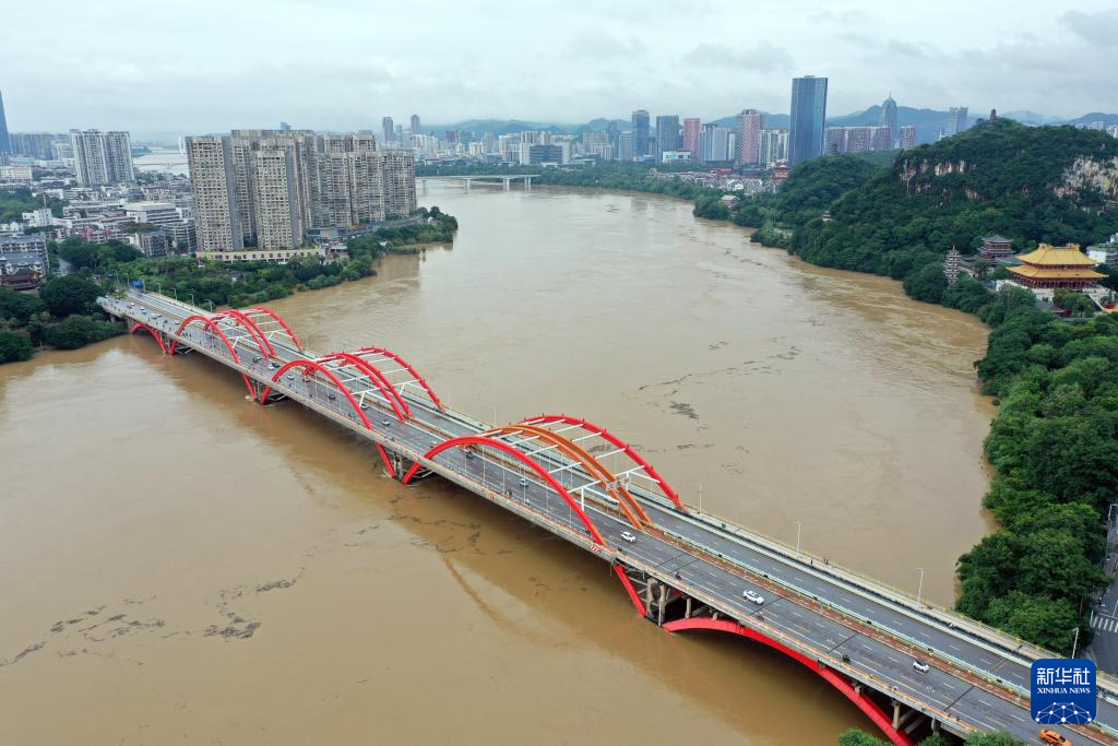 這是洪水經過的柳江柳州市區段(6月18日攝,無人機照片)。