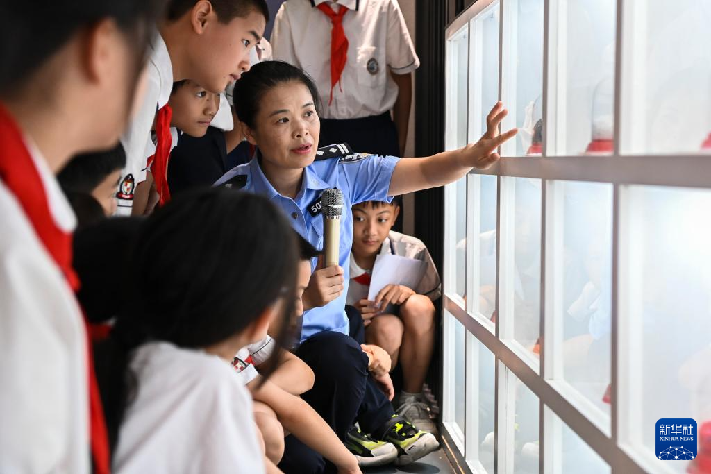 6月21日,在廣西禁毒教育示范基地,公安民警為學生們進行禁毒知識宣傳。