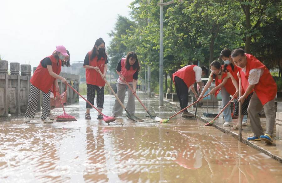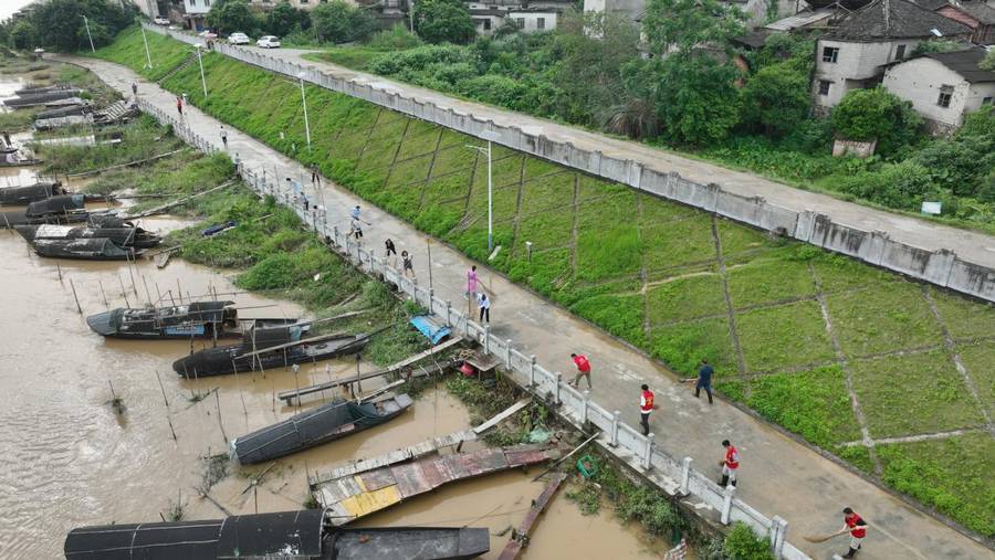 受近期強降雨影響,廣西柳州市柳城縣融江河段沿江道路出現不少淤泥。隨著水位的下降,6月19日,柳城縣組織600多名黨員干部,在沿江道路開展清理淤泥行動,為群眾出行提供保障。(湯曉逵 駱毅 羅馨湘)