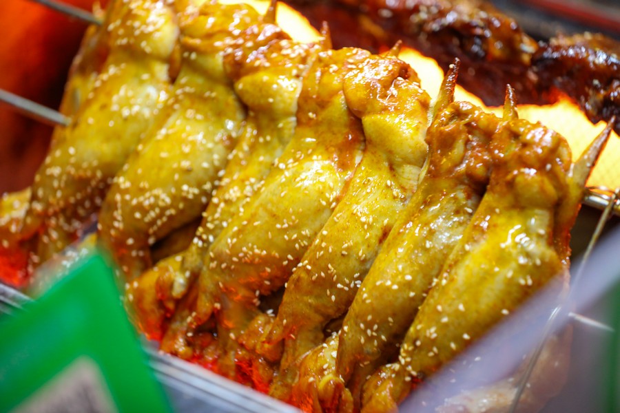 大集市里,攤主們拉起烘托氛圍的串燈,周邊搭配鮮花綠植,再加上五顏六色的新鮮水果撈、嗞嗞冒油的烤肉烤串、卷餅面皮臭豆腐等特色小吃,夜市氛圍瞬間拉滿。