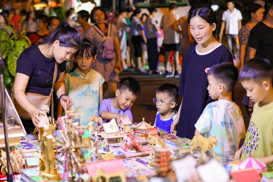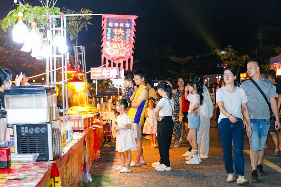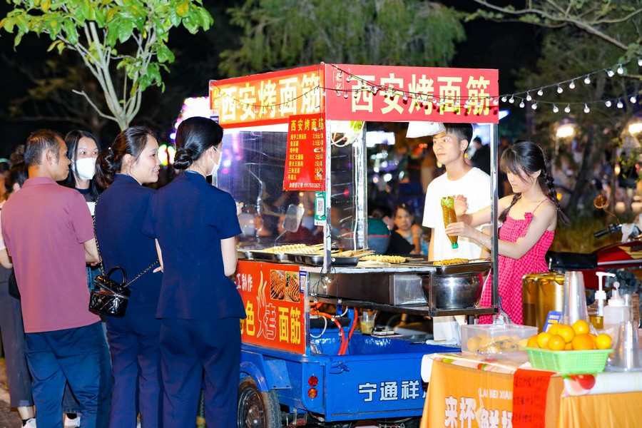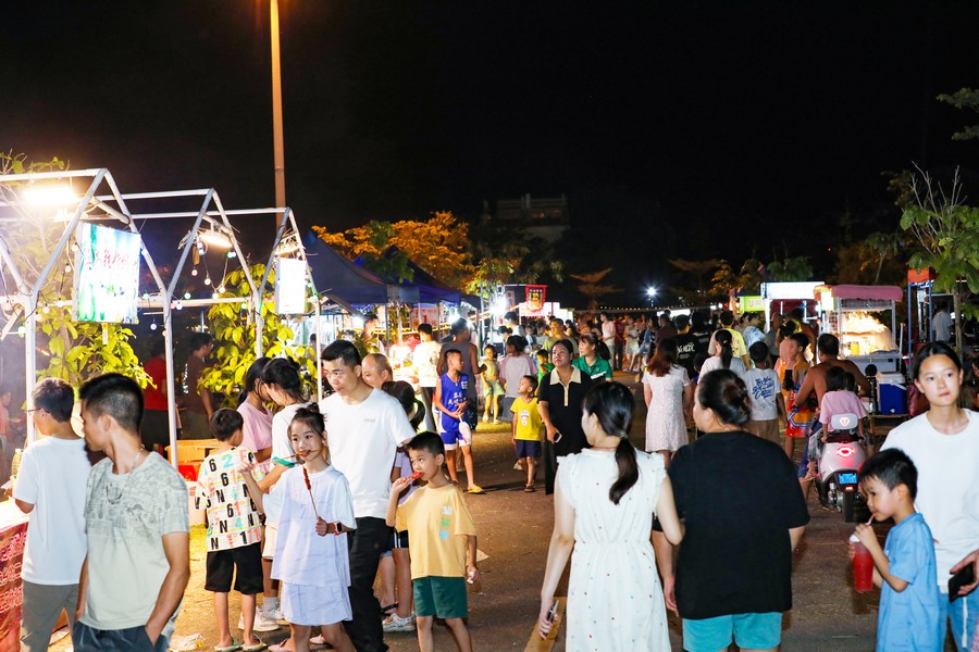 市民朋友們或散步閑逛,或打卡拍照,或遛娃玩樂,或品嘗美食,客似云來,人頭攢動,構成一幅“夜市千燈照碧云”的熱鬧場景。