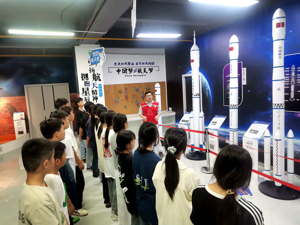 ↑駐村第一書記李林在航天北斗科普中心為初化村青少年講解航天科技知識