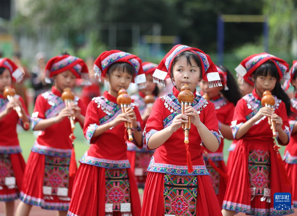 近年來,廣西各地在民族團結進步創建工作中,結合各地實際,將山歌、陀螺、蘆笙、刺繡、竹竿舞等非遺文化引進中小學課堂,讓學生在傳承優秀中華文化的同時,接受民族團結進步教育,不斷鑄牢中華民族共同體意識。