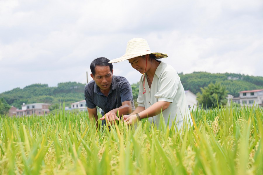 眼下,正處于水稻灌漿關鍵期。廣西柳州市柳城縣六塘鎮農業農村服務中心的農技人員到六塘鎮拉燕村大潘屯,查看天氣對水稻灌漿的影響,同時指導農戶做好防倒伏措施。