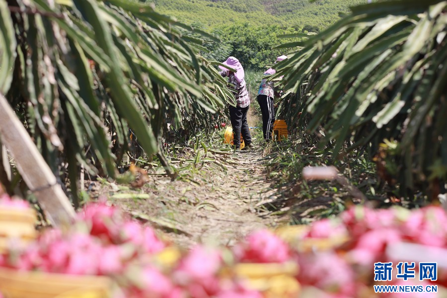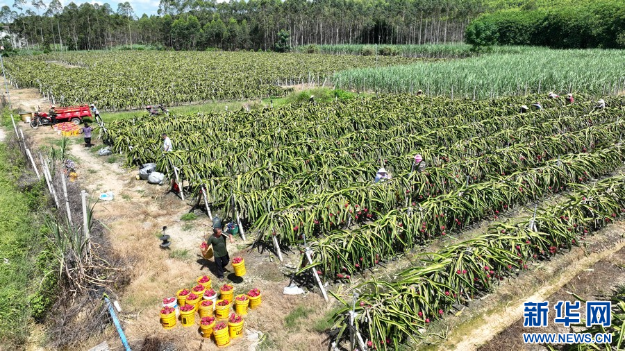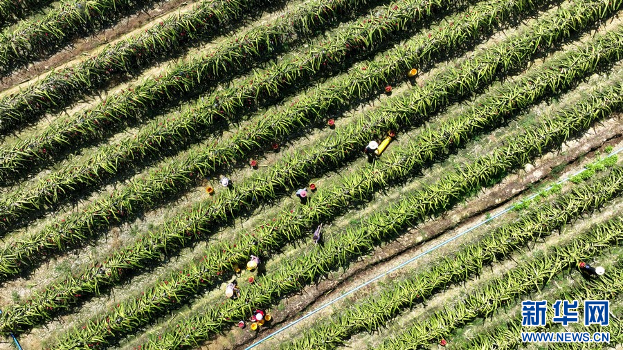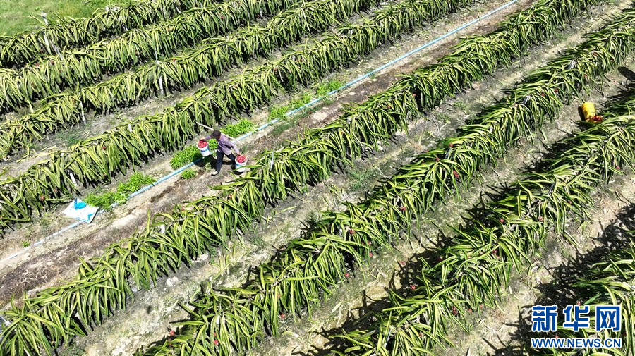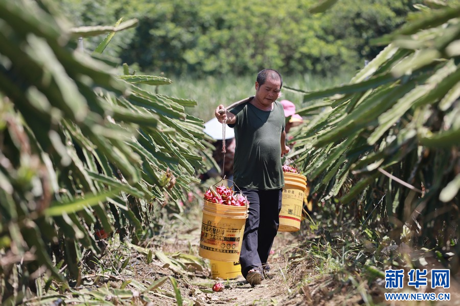夏季,在廣西柳州市柳城縣東泉鎮雷塘村的一個家庭農場里,農戶種植的軟枝紅心火龍果猶如一個個“小燈籠”掛滿枝頭,迎來了豐收的時刻。