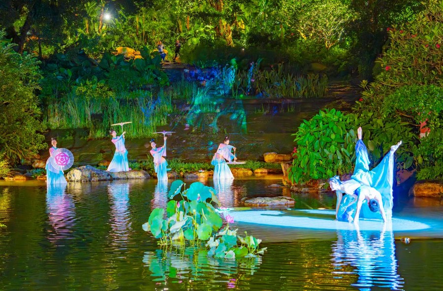 沿路前行,蘭花歇腳小棧附近,夜觀奇花異卉區域,匯集曇花、夜來香等幾十種夜間開花的奇特花卉,還可以聞香識花,享受一場獨特的香療之旅。