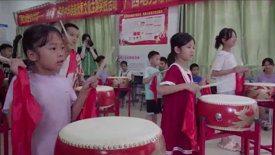 “電小潮”威震天鼓樂團指導小朋友學習中國鼓樂文化