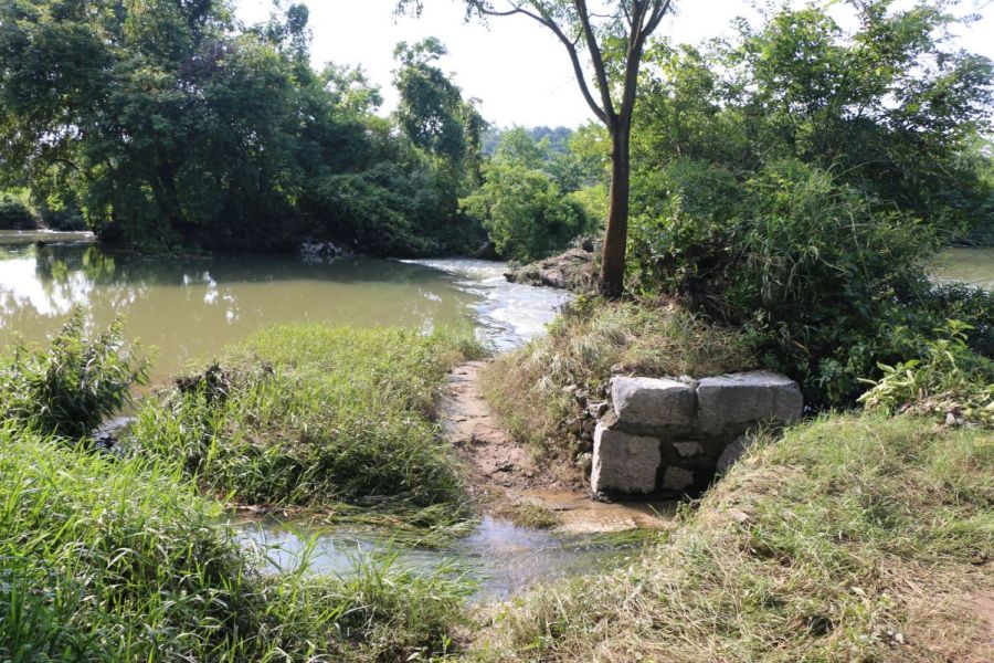 桂林市臨桂區臨桂鎮大宅村桃花江大宅村節點堰壩生態修復前(桂林市自然資源局供圖)