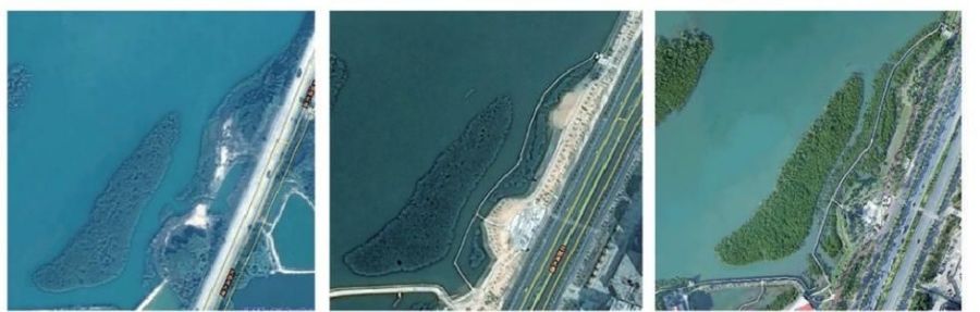 (左2011年、中2013年、右2020年)(防城港市自然資源局供圖)