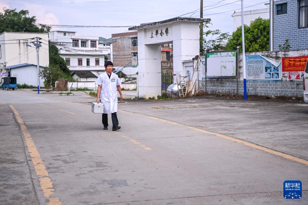 8月15日,在廣西河池市宜州區德勝鎮上坪村,鄉村醫生葛現克走在出診路上。