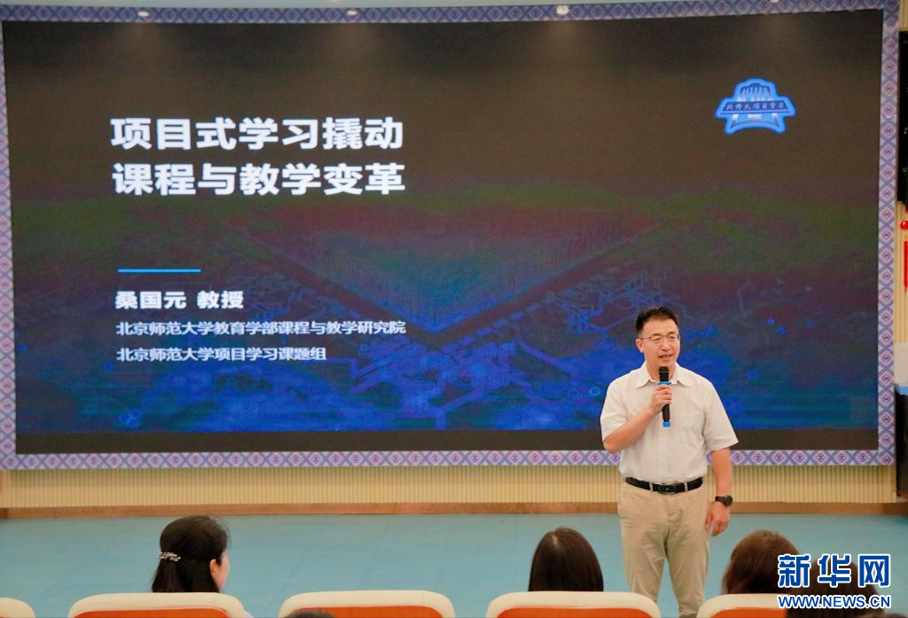 新華網南寧8月27日電(記者 王楚然) 26日,南寧市濱湖路小學教育集團特別邀請北京師范大學教育學部課程與教學研究院教授、北師大項目學習課題組總負責人桑國元教授,來邕開展“聚焦項目式學習,踐行育人方式變革”專題培訓活動。該活動旨在進一步推進新課程改革,提升教師對項目式學習的理解與實施能力。青秀區教育局副局長黃莉學參加活動并致辭,青秀區名師工作坊成員以及濱湖路小學教育集團行政和骨干教師代表等參加培訓活動。