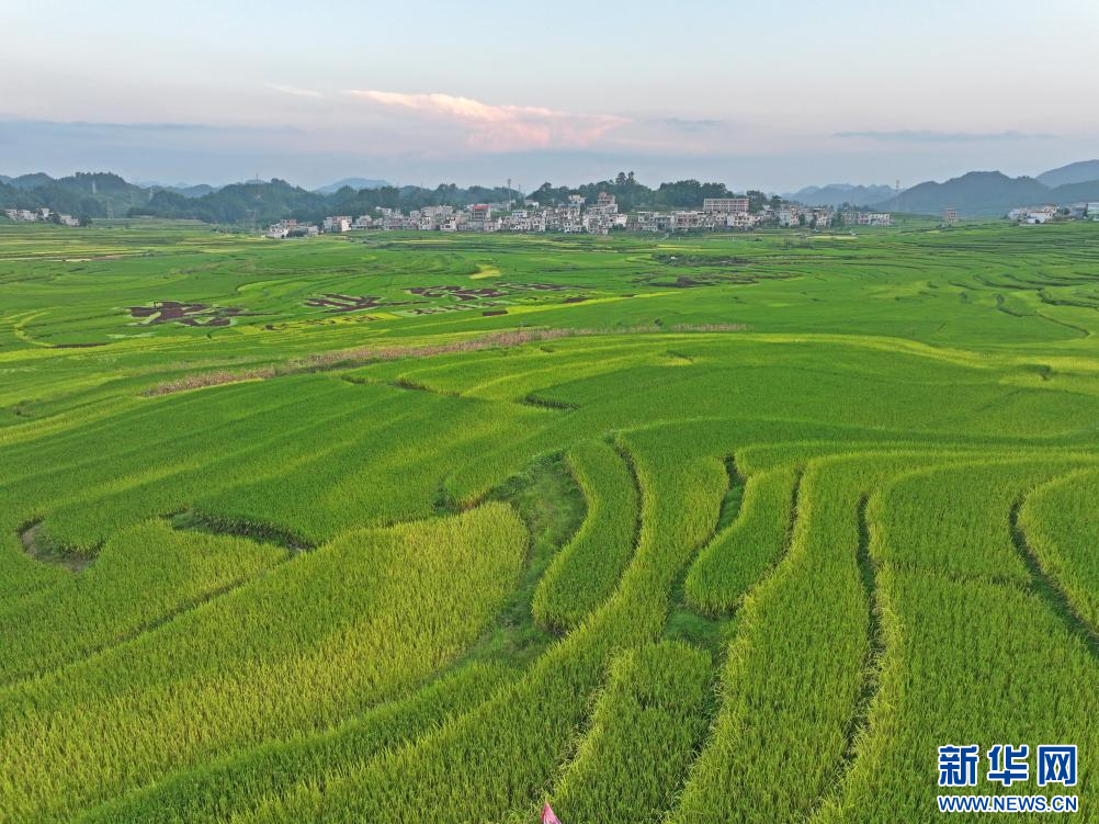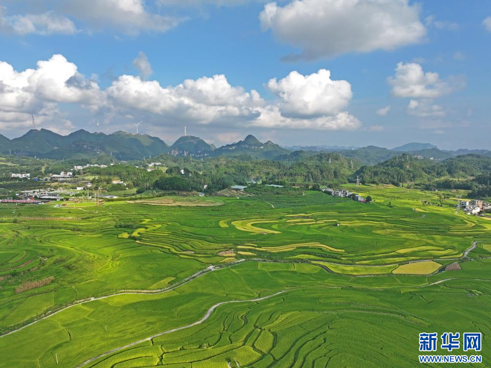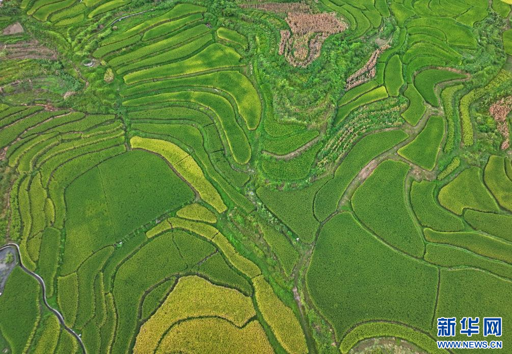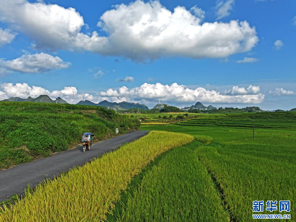 時下正是廣西河池市南丹縣芒場鎮巴平村水稻灌漿期,豐收在望的田園色彩斑斕,美不勝收。