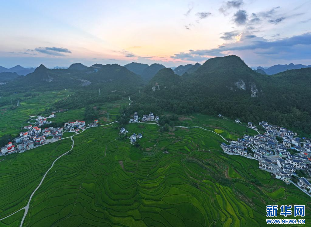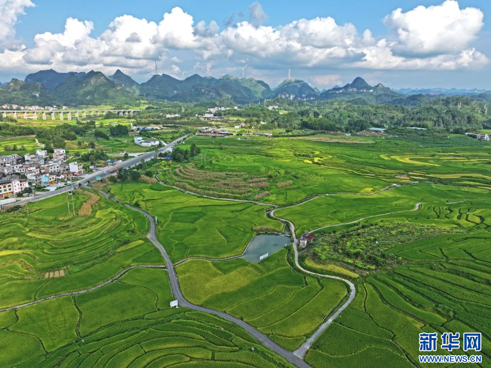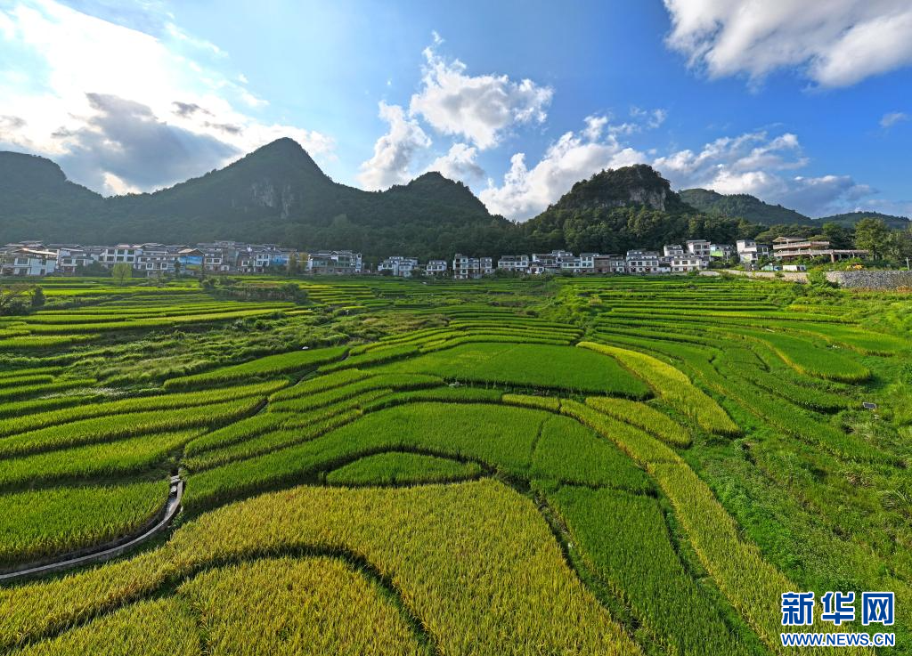 這是廣西河池市南丹縣芒場鎮巴平村田園秋色(8月30日攝,無人機照片)。