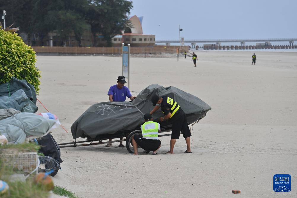 9月6日,在廣西北海市僑港海灘,工作人員在巡邏。