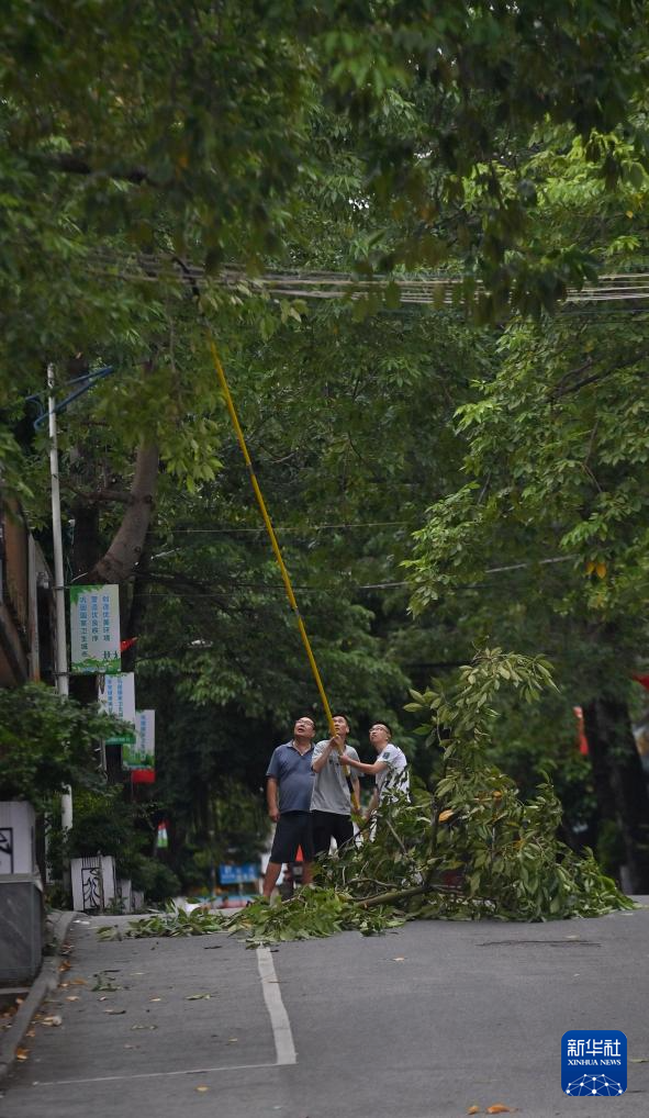 9月6日,在廣西北海市紅棉路,人們在清理樹枝。