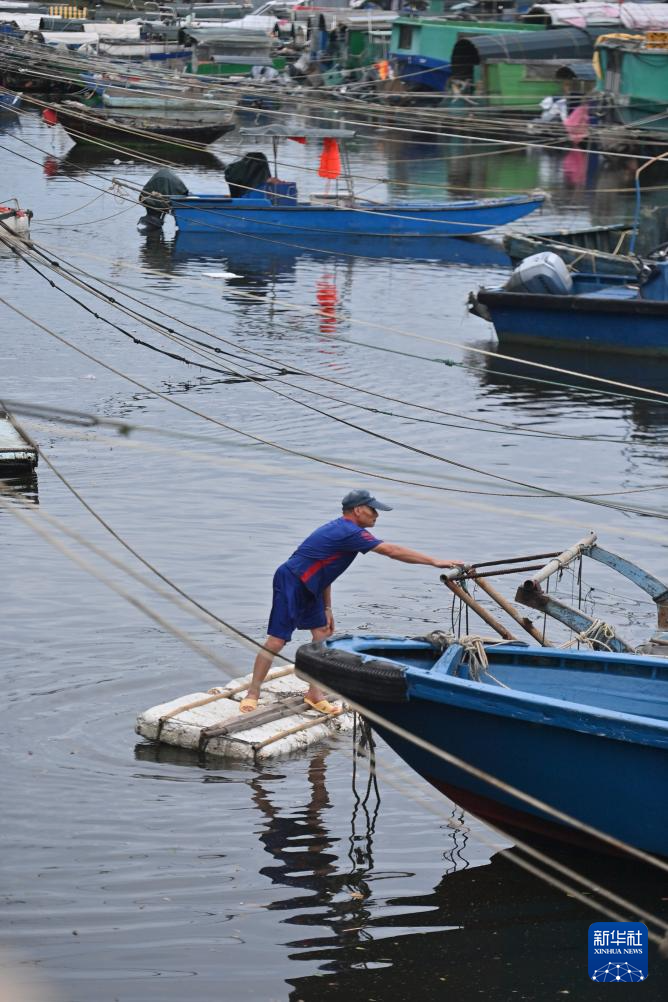 9月6日,在廣西北海市僑港鎮電建漁港碼頭,漁民準備撤離上岸。